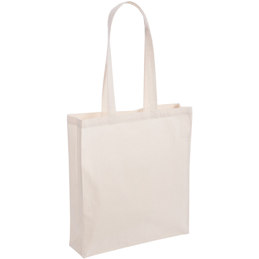 Un sac un peu plus épais en toile de coton 220 grammes. Le Pallas possède un fond de 10 cm de large, ce qui lui octroie une contenance plus importante que de normal. Le sac possède de longues anses et est fabriqué en coton certifié OEKO TEX 100.