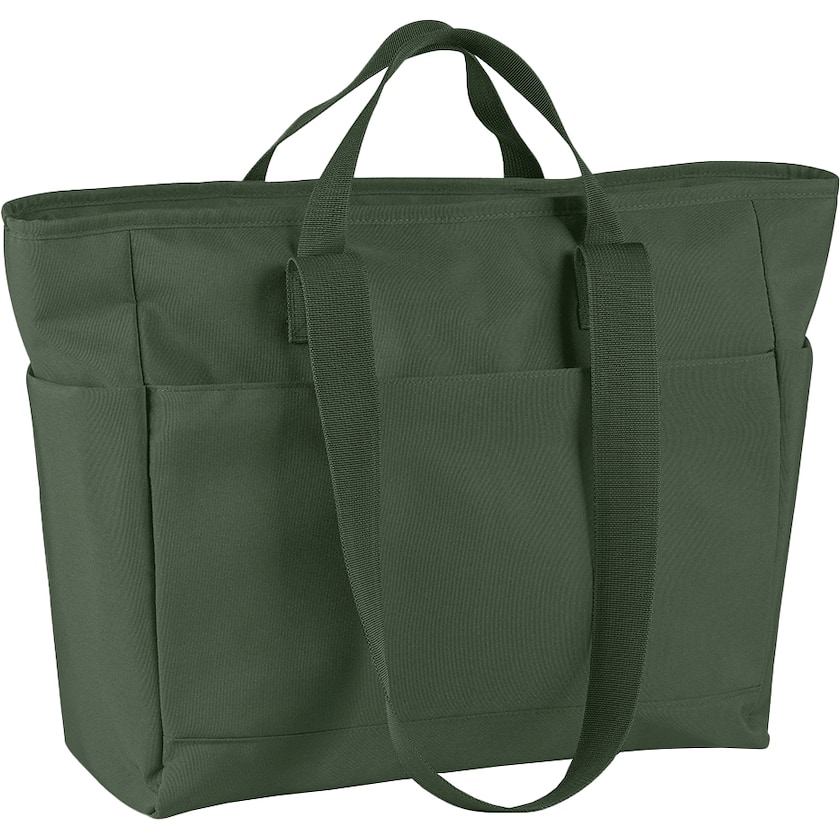 Sac shopping exclusif avec tissu déperlant. Le compartiment principal est zippé et comprend une petite poche zippée à l'intérieur. Des poches sont également présentes à l'extérieur. Le sac est fabriqué en polyester recyclé certifié GRS, conformément à la norme Control Union CU811033.
