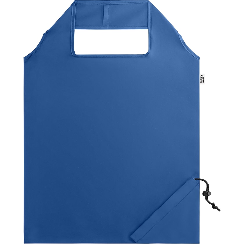Sac écologique qui se roule en une petite boule lorsqu'il n'est pas utilisé. Le Dauphin est en rPET, c'est-à-dire en bouteilles PET recyclées. La surface d'impression maximale est indiquée pour le sac enroulé. L'impression est également possible sur le sac déroulé. La surface d'impression est alors de pas moins de 220 x 160 mm, mais seule l'impression monochrome est possible.