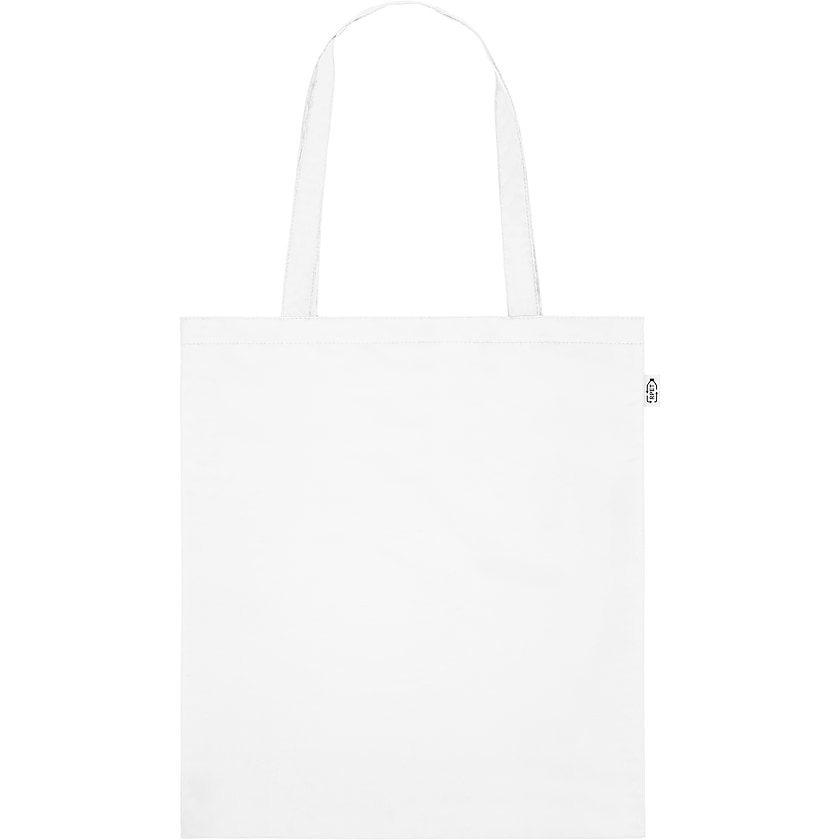Sac shopping 100% rPET. Les anses mesurent 55 cm de long. Le rPET est un matériau respectueux de l'environnement produit à partir de plastique recyclé.