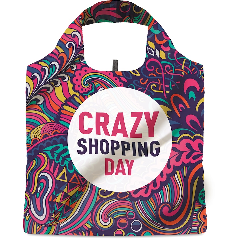 Sac de courses pliable écologique avec imprimé sur tout le tissu. Le sac Lindsey est fabriqué en rPET résistant. Votre motif est imprimé sur l'avant et l'arrière du sac, ainsi que sur la poche. Une fois plié, le sac mesure 130 x 80 mm. Le sac étant fabriqué sur mesure, le délai de livraison est plus long que d'habitude.