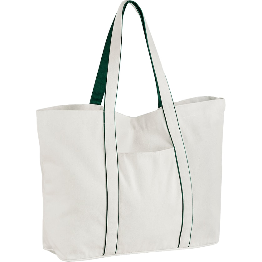 Sac de plage écologique en tissu de coton robuste. Le compartiment principal se ferme grâce à un fermoir magnétique. À l'extérieur, une poche dissimulée accueille vos objets de valeur. Ce sac peut être porté à l'épaule ou à la main. Le tissu, d'un poids de 407 grammes/m², est composé à 70 % de coton recyclé et à 30 % de polyester recyclé.