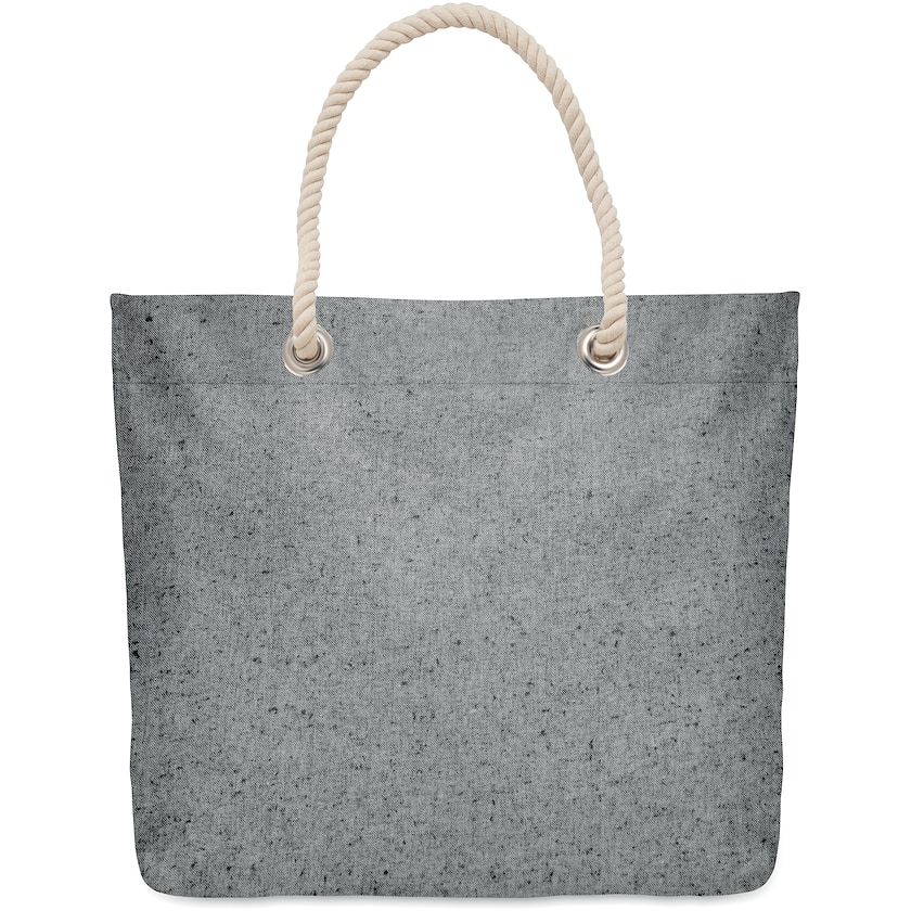Sac de plage en coton recyclé avec poignées solides à cordon. Le tissu est composé à 80 % de coton recyclé et à 20 % de coton ordinaire.