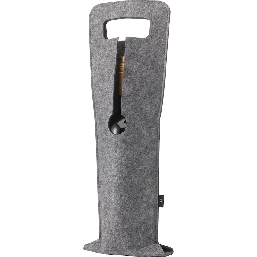 Sac pour bouteille de vin en feutre écologique. Le feutre est fabriqué à partir de bouteilles de vin recyclées. Le sac peut contenir une bouteille de vin. Personnalisation par impression monochrome uniquement.