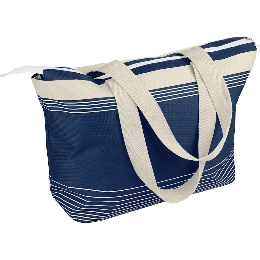 Sac de plage intemporel qui peut également être utilisé comme sac de shopping. Le sac est en polyester avec détails et anse en toile de coton. Le sac comporte une poche intérieure.