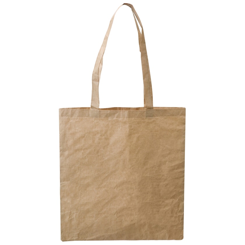 Sac écologique fabriqué à partir de coton et de papier. Les anses mesurent 60 cm de long, ce qui permet de porter le sac aussi bien à l'épaule qu'à la main.