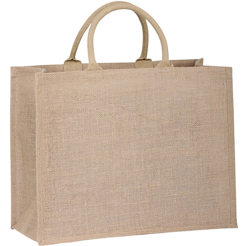 Sac en jute personnalisé avec anses courtes. Grâce à son grand fornat et son fond renforcé, il est parfait pour porter des objets plus lourds ou larges. De plus, la toile de jute est un matériau écologique qui fait de ce sac un bon choix écologique. La toile de jute étant un matériau relativement grossier, seuls des motifs relativement simples peuvent être imprimés.