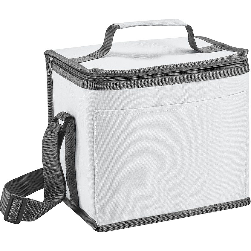 Glacière souple classique avec anse sur le rabat. Sur le devant, une grande poche de rangement permet de ranger les petits accessoires. Les bretelles sont ajustables.