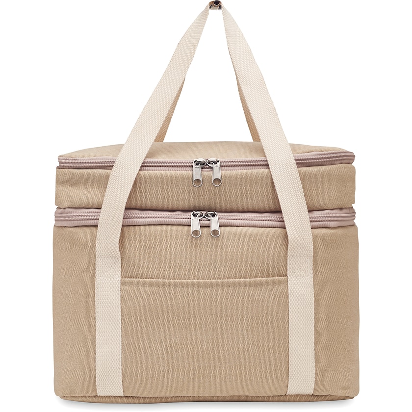 Sac isotherme en toile canvas délavée et sangles en coton. Le Granmore a deux compartiments de rangement et une poche sur le devant.