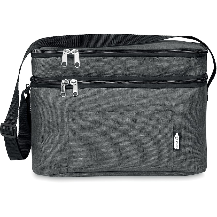 Grande glacière écologique et spacieuse avec votre propre impression La Greenland est fabriquée en rPET, avec un intérieur en PEVA. Elle comporte deux grands compartiment ainsi qu'une poche sur le devant. La bandoulière est réglable.