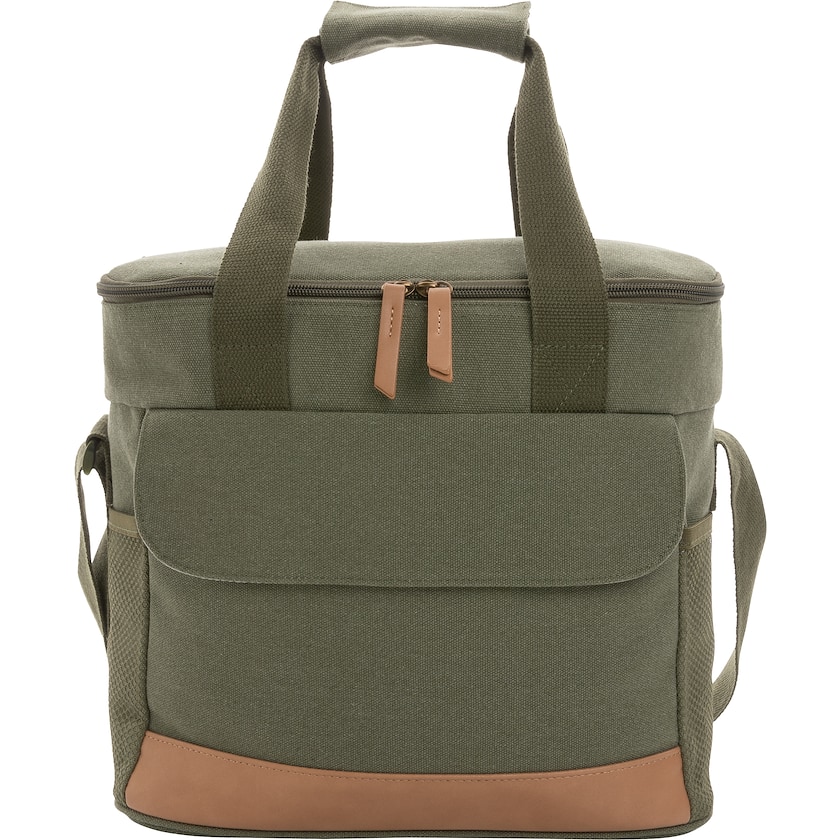 Sac isotherme de haute qualité en matériau recyclé. Le sac isotherme peut contenir l'essentiel pour le pique-nique. Les côtés sont pourvus de poches filets, l'avant d'une petite poche pour petits accessoires. Le tissu est fabriqué à 40% en polyester recyclé et à 60% en coton recyclé. Le rembourrage est en PEVA.