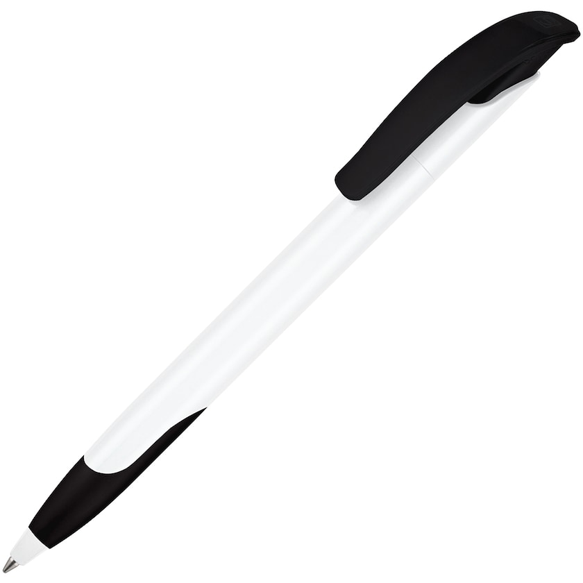Stylo de haute qualité avec corps blanc et zone de préhension et barrette de couleur contrastante. Choisissez entre encre bleue ou noire. Un stylo de qualité Senator®.