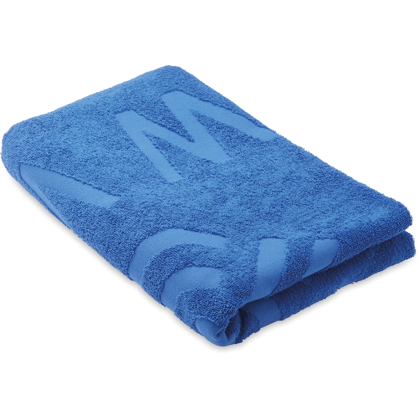 Serviettes de bain avec votre logo en relief. À l'endroit où votre logo apparaît, les boucles normales du tissu éponge sont absentes, ce qui crée un bel effet de relief. Le verso n'a pas d'effet de relief. Vous choisissez la couleur de la serviette en introduisant le code Pantone souhaité. Le tissu pèse 350 g/m². Les serviettes de bain sont livrées emballées individuellement dans des polybags. Elles sont fabriquées en Europe.