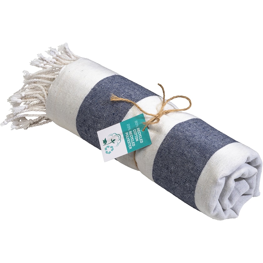 Serviette de plage rayée en matière recyclée. Kings est composé à 80 % de coton recyclé et à 20 % de polyester recyclé. S'adapte aussi bien à la plage qu'au pique-nique.