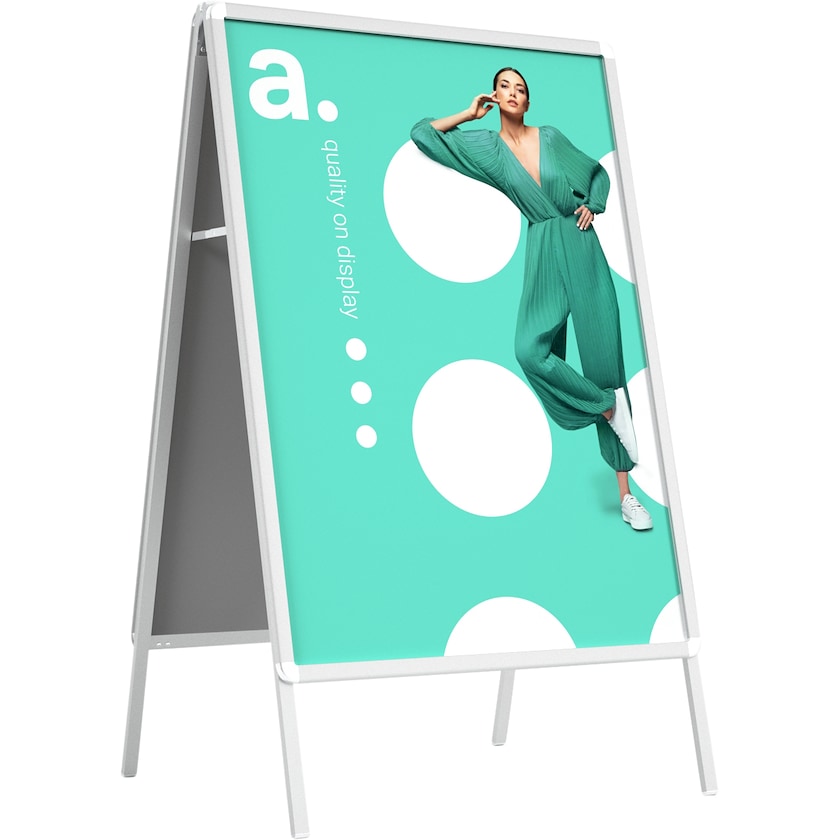 Grande paneau de rue en aluminium anodisé robuste. Next 84 utilise une technologie intelligente Open-In-Open-Zip qui vous permet de modifier facilement les motifs. Grâce à la technologie, le street talker est facile à ouvrir et donc à changer de motif. L'impression est protégée par un film non réfléchissant qui donne une visibilité inégalée au sujet. Le motif correspond à la taille A0.