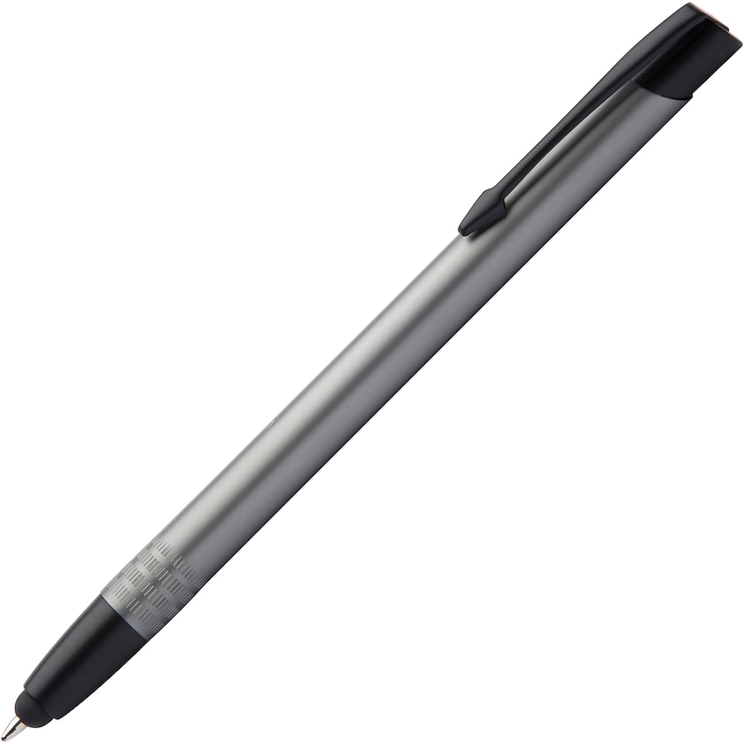 Stylo touch avec corps uni en aluminium mat. Le stylo est à encre noire. La personnalisation est effectuée soit par impression soit par gravure laser. En cas d'impression monochrome, la surface d'impression est de pas moins de 90 x 5 mm.