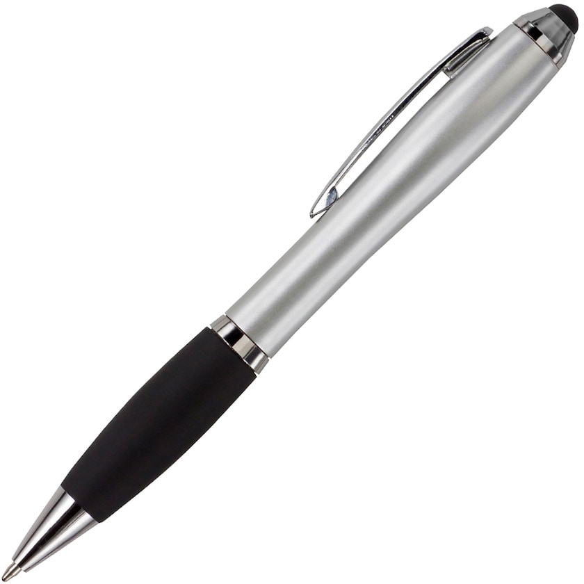 Stylet/stylo avec zone de préhension confortable en caoutchouc à prix abordable. Le stylo est à encre noire.