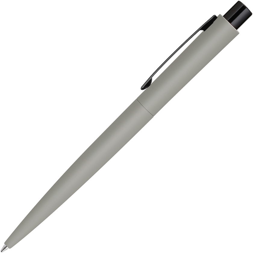 Stylo en métal avec surface soft-touch mate. La barrette et le bouton sont de couleur noire. La personnalisation peut être réalisée soit par impression soit par gravure laser.