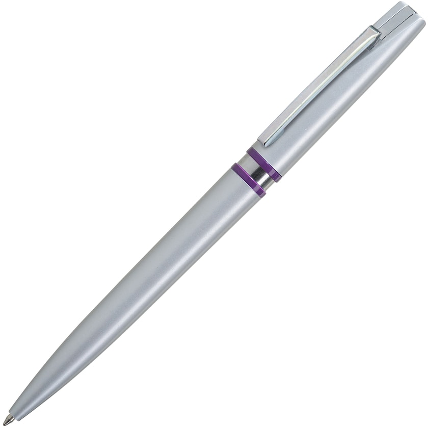 Élégant stylo publicitaire avec son corps argenté et sa barrette chromée.