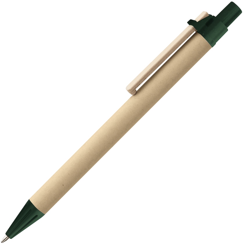 Stylo publicitaire avec corps en carton et barrette en bois. L'impression peut être effectuée sur le corps du stylo comme sur la barrette. Un stylo avec une beauté naturelle! Avec impression 3 couleurs maximum.