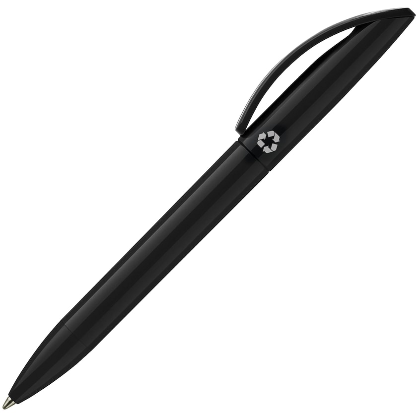 Stylo publicitaire écologique disponible à partir de 100 unités. Le stylo est fabriqué à 100% à partir de plastique ABS recyclé non toxique. Un symbole de recyclai préimprimé indique que le stylo est fabriqué à partir de matériaux recyclés.