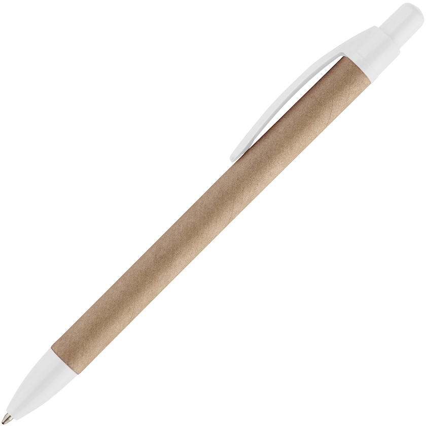 Stylo avec corps en carton non traité et plastique. Un stylo publicitaire rustique et original! Uniquement avec impression 3 couleurs.