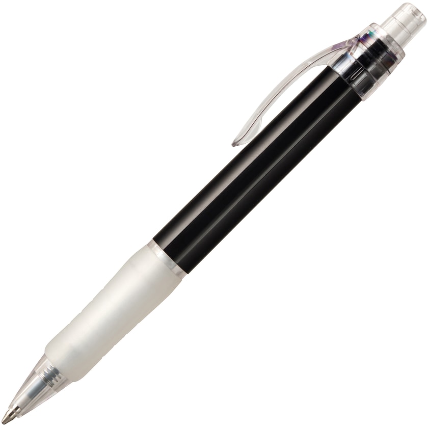 Stylo robuste avec corps de couleur uni et finitions transparentes.