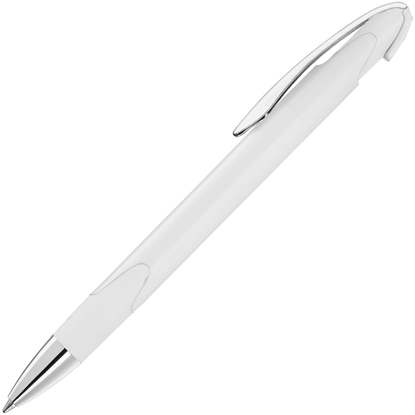 Stylo publicitaire avec corps uni, détails chromés et zone de préhension confortable.