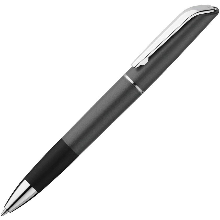 Stylo de couleur métallique avec zone de préhension et de nombreuses finitions chromées.