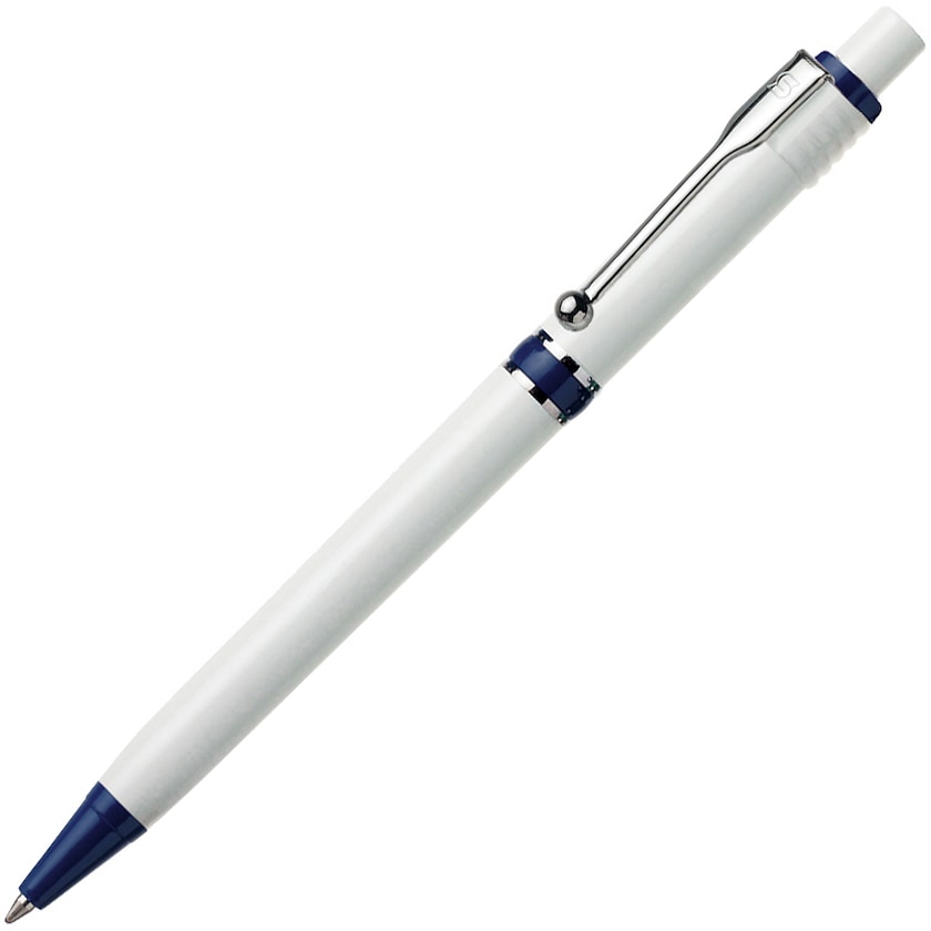 Stylo publicitaire de haute qualité avec corps blanc et détails colorés. Le Raja est l'un de nos stylos publicitaires les plus classiques. Un stylo de haute qualité, avec une écriture agréable.
