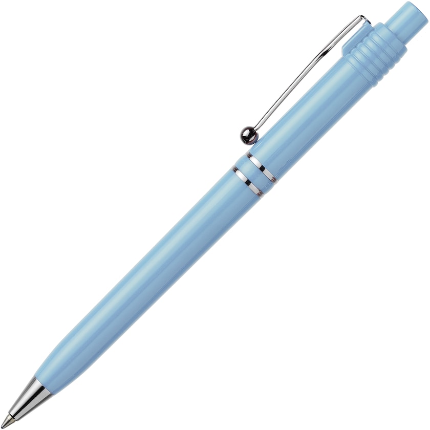 Stylo publicitaire élégant avec une barrette un peu différente. Clips, pointe et anneaux sont en métal chromé. L'encre est à l'épreuve des documents selon la norme ISO 12757-2. Le stylo est frabriqué en Europe.