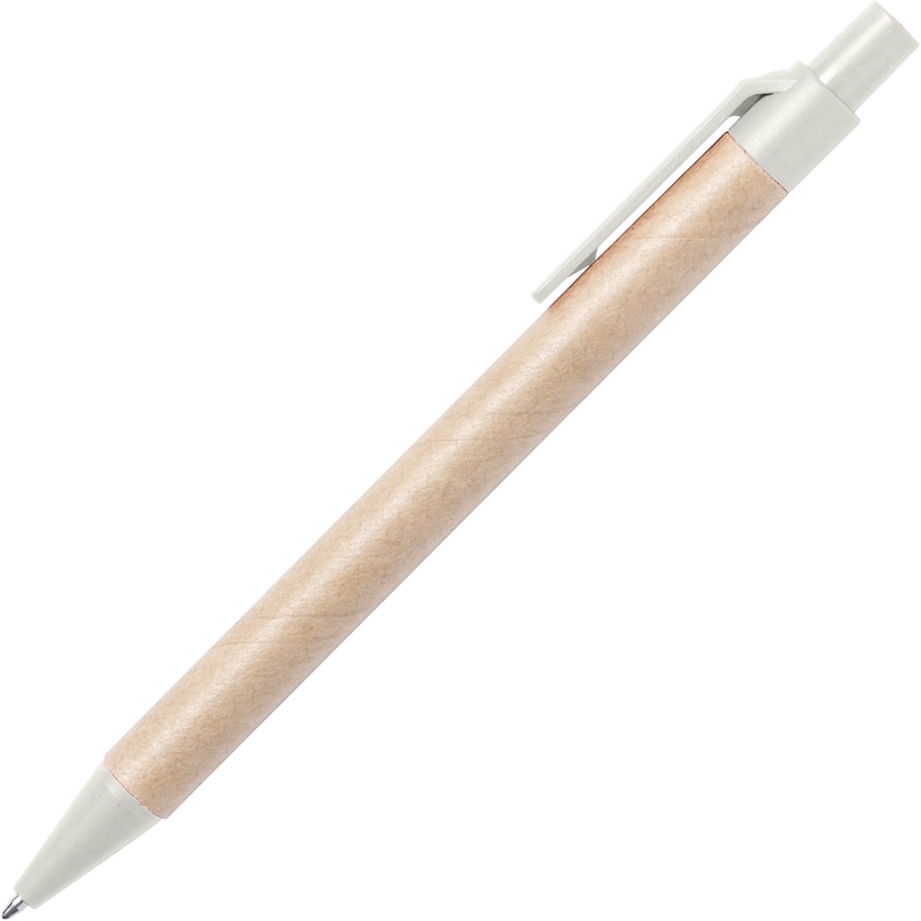 Stylo écologique fabriqué à partir de papier recyclé et de plastique de paille de blé. Le stylo est doté d'une cartouche d'encre bleue.