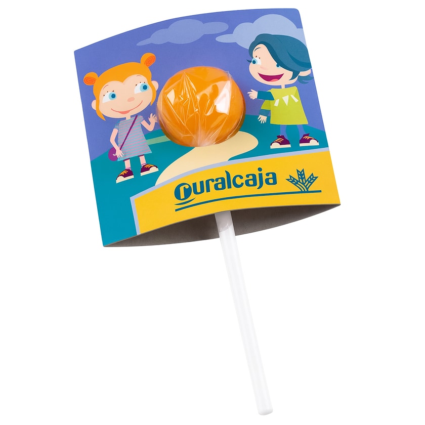 Sucette avec carte personnalisée. Choisissez parmi cinq goûts délicieux (la quantité minimum est de 6000 unités par goût). L'avant et l'arrière de la carte sont entièrement personnalisables suivant vos souhaits. En général, le baton de la sucette est vierge.