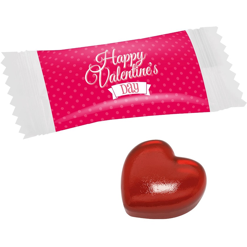 Bonbon en forme de cœur avec emballage flow pack. L'intégralité de l'emballage est conçu suivant vos souhaits. Un bonbon qui laisse libre cours à vos sentiments!