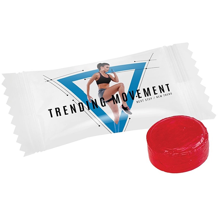 Bonbon rond sans sucre avec emballage flow pack. Chaque bonbon pèse environ 4 grammes et est sucré à l'aide de l'édulcorant isomalt. Les bons bonbons ne sont pas toujours mauvais pour la santé!