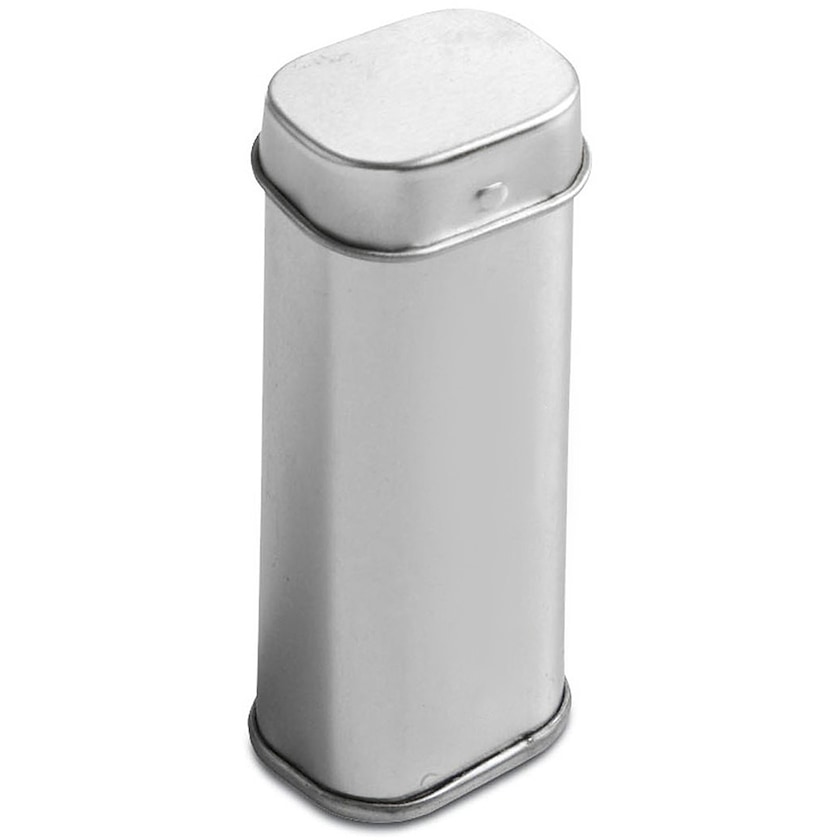 Élégante boîte en métal contenant des pastilles à la menthe sans sucre.