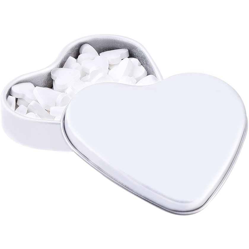 Laissez l'amour fleurir! Boîte en métal en forme de cœur remplie de pastilles à la menthe en forme de cœur.