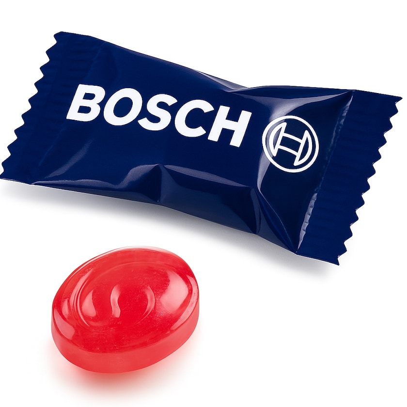 Petit bonbon avec emballage flow pack personnalisé. Vous concevez l'emballage entièrement comme vous le souhaitez. Les bonbons peuvent être conservés pour une durée étonnamment longue. Chaque bonbon pèse environ 2,3 grammes. Commandez de petits bonbons avec emballage flow pack chez Axon Profil!