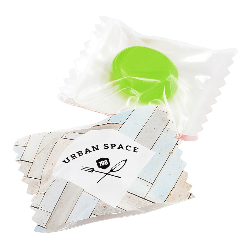 Bonbons personnalisés disponibles à partir de seulement 1000 unités. Les bonbons sont plus gros que de coutume, et pèsent 6,5 grammes. Choisissez entre les goûts menthol et mix fruités. L'intégralité de la face avant est personnalisée suivant vos souhaits.