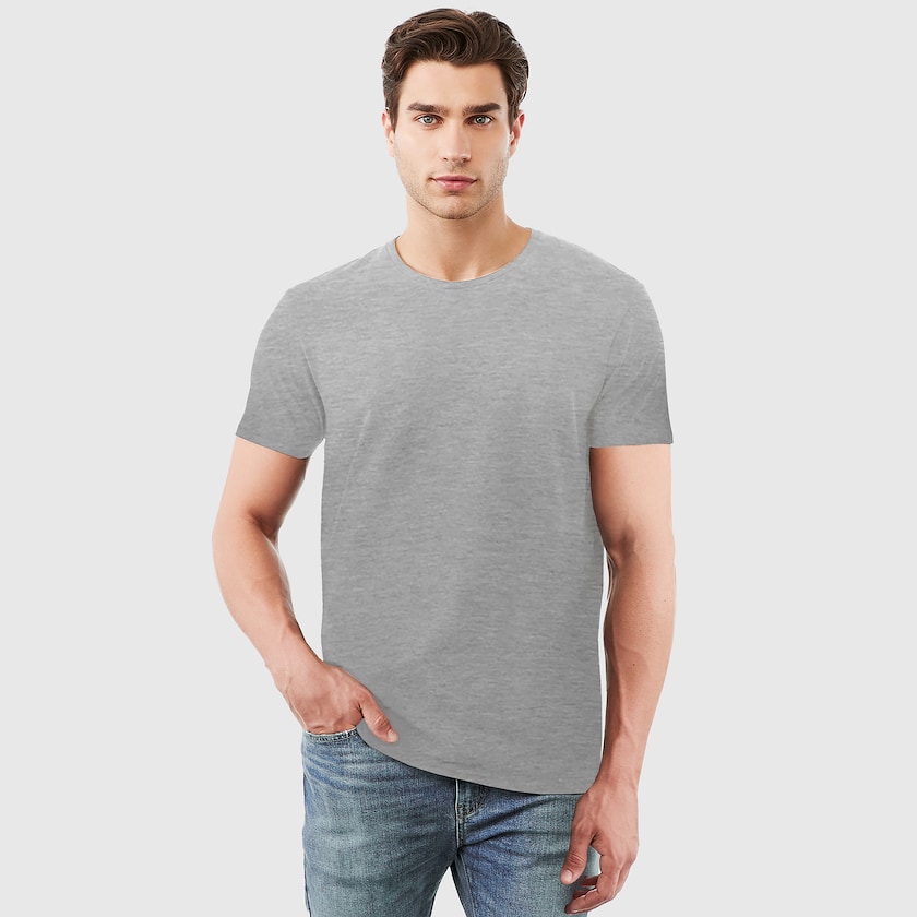 T-shirt personnalisé en coton écologique. Le T-shirt est fabriqué en toile de coton de haute qualité d'une épaisseur de 200 grammes. Le tissu comporte 5% d'élasthanne, pour un tissu qui s'étire agréablement. Également disponible en version version femme.