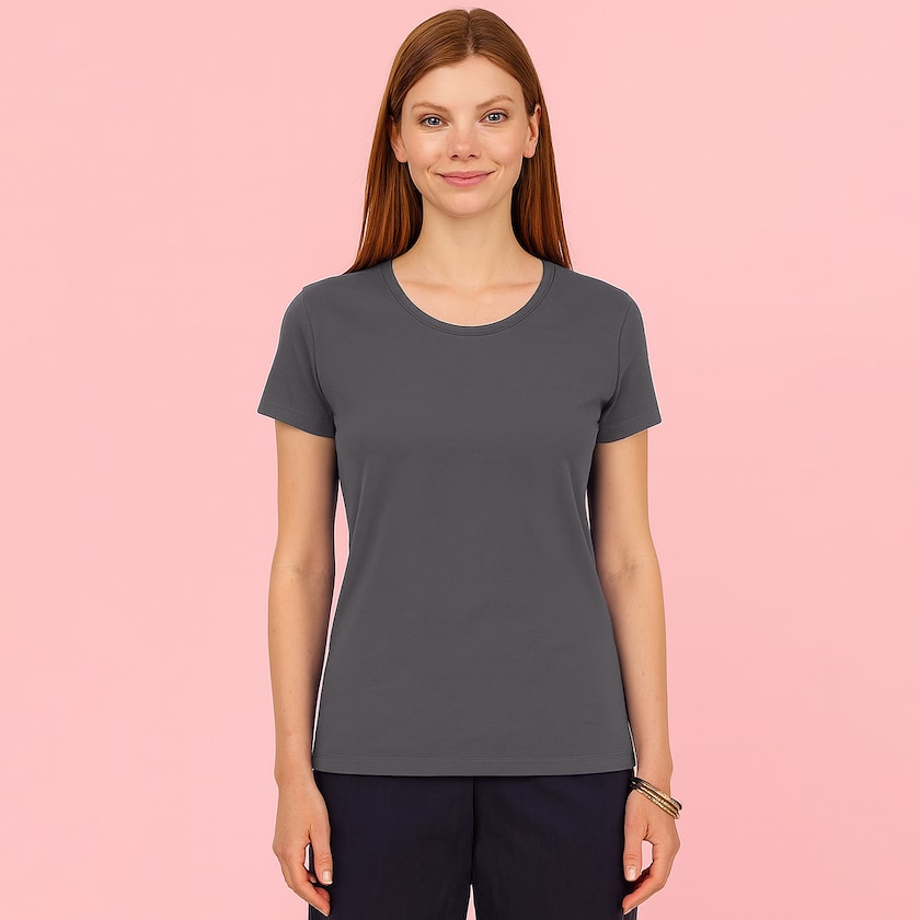 T-shirt femme en coton 100% écologique. Le T-shirt possède un tissu souple et agréable et une coupe qui souligne la silhouette féminine. Livré sous emballage plastique individuel. Les modèles de toutes les couleurs sont fabriqués en coton 100% écologique sauf ceux de la couleur sport grey qui est fabriqué dans un tissu composé à 90% de coton écologique et à 10% de viscose. Également disponible en version version homme.