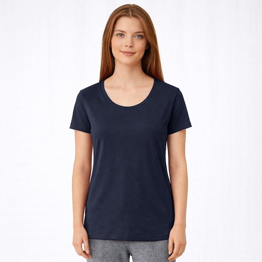 Confortable T-shirt femme avec touche de viscose. Le tissu est composé à 50% de polyester, 25% de coton et 25% de viscose. Ce mélange donne un T-shirt ultra doux au toucher et confortable à porter. Livré sous emballage plastique individuel. Également disponible en version version homme.