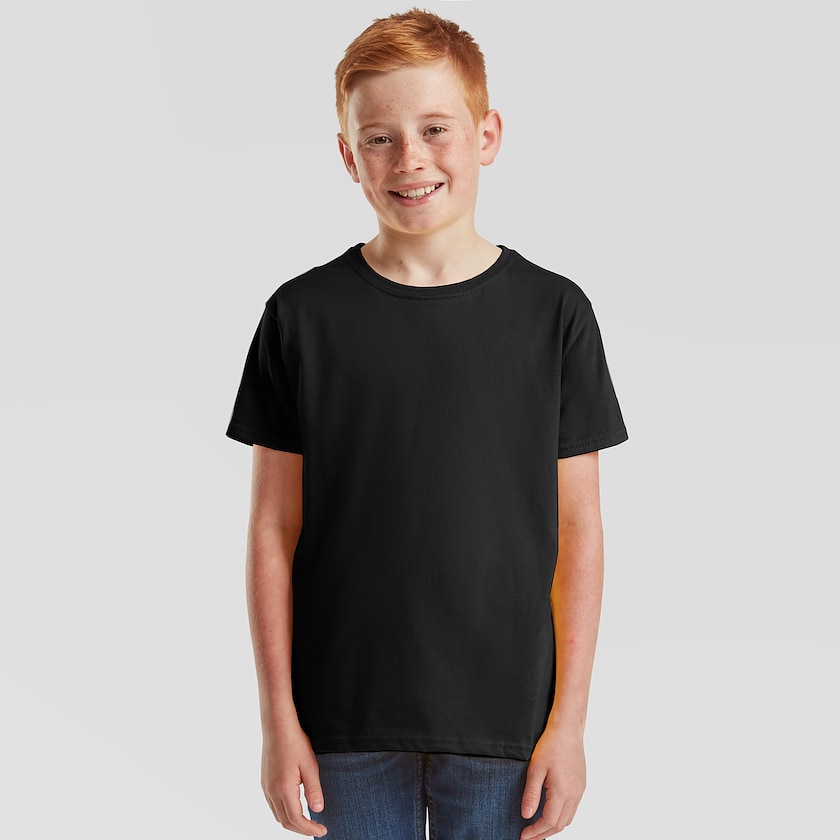 T-shirt enfant moderne disponible dans une grande variété de couleurs. Le T-shirt est 100% coton, sauf le modèle couleur heather grey, dont le tissu comprend 97% de coton et 3% de polyester, et les modèles couleur "retro", "vintage" et "heather", dont le tissu comprend 52% de coton et 48% de polyester. Livré sous emballage plastique individuel.