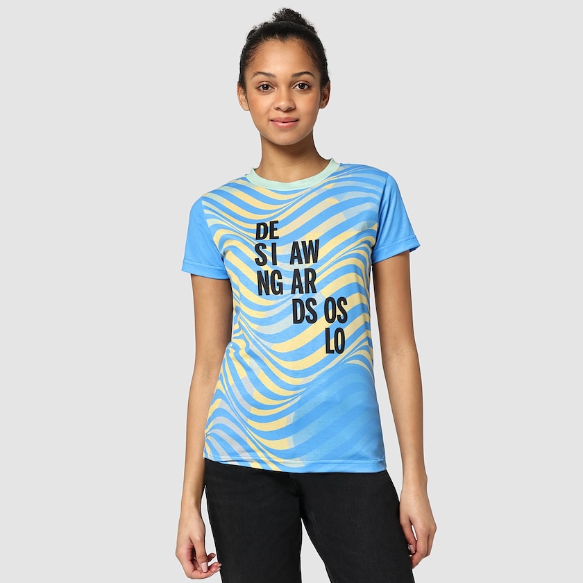 T-shirt femme sur mesure en polyester au toucher coton. Ce t-shirt est confectionné dans un tissu polyester blanc de 145 grammes. L'ensemble du tissu est imprimé numériquement selon vos instructions, puis cousu pour former un t-shirt. Vous disposez ainsi d'un nombre illimité d'impressions, de couleurs et de finitions, jusqu'aux coutures. Ce t-shirt est disponible du XS au 4XL. La quantité minimale par taille est de 5 pièces. La tolérance de taille est de +/- 1,5 cm et nous nous réservons le droit de modifier la quantité livrée de +/- 5 %. La quantité livrée est facturée. Ce t-shirt étant fabriqué sur mesure, le délai de livraison est plus long que d'habitude. Également disponible en version version homme.