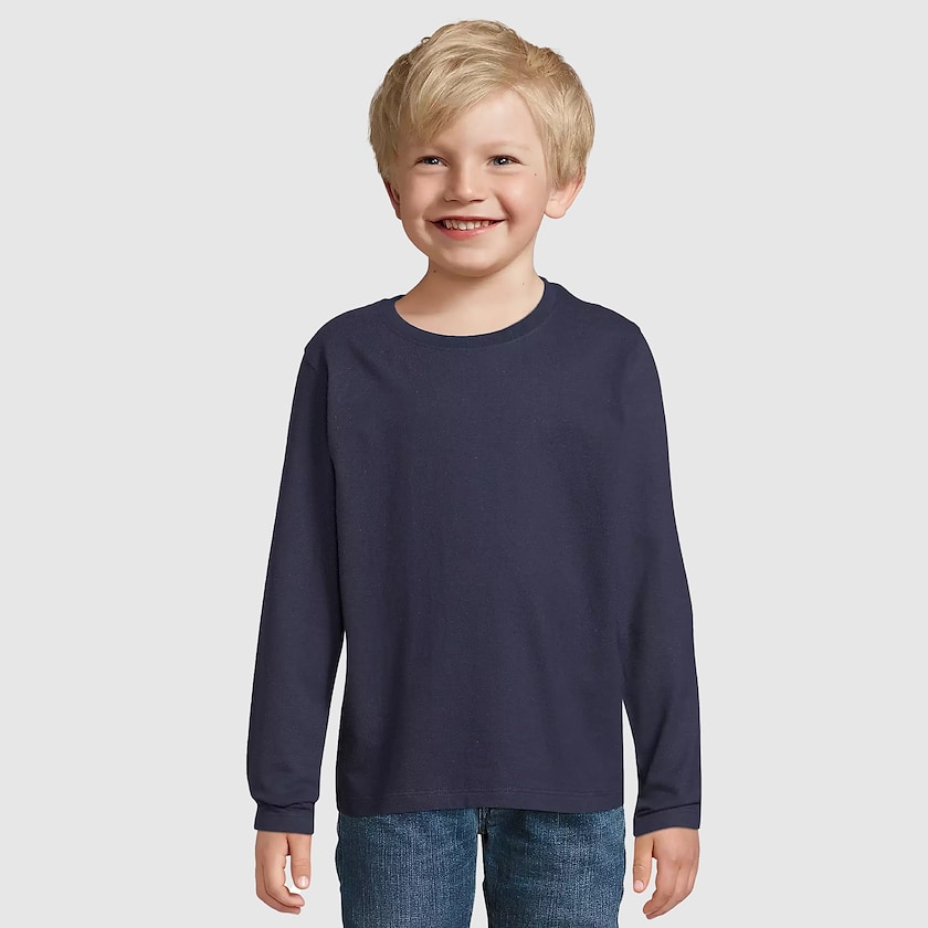 T-shirt manches longues pour enfant, disponible à partir de 10 unités. Le t-shirt est 100% coton OEKO-TEX de haute qualité.