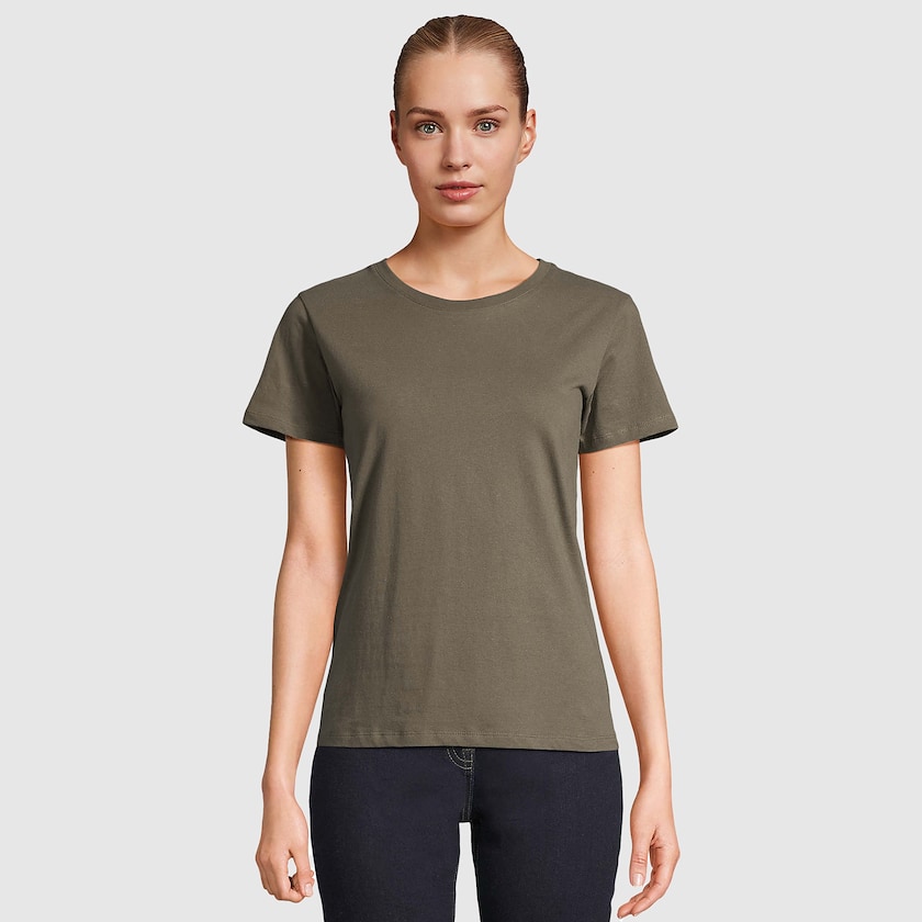 Le grand favori SOL's des t-shirts femme. Le t-shirt est 100% coton, avec un tissu de 150 grammes d'épaisseur certifié OEKO-TEX. Également disponible en version version homme.