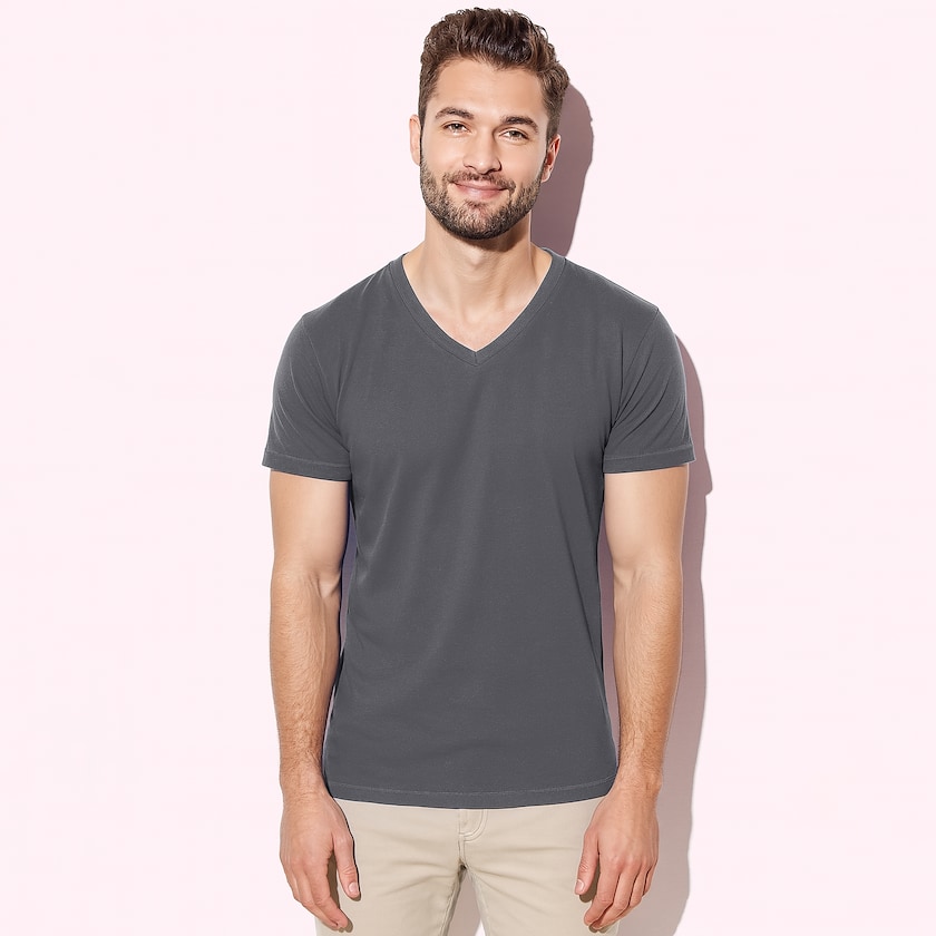 T-shirt moulant Stedman avec grand col en V. Les T-shirts sont livrés sous emballage plastique individuel.