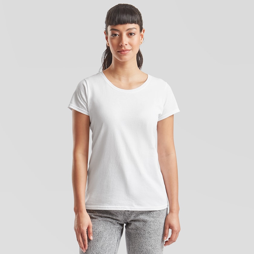 T-shirt Fruit of the Loom femme avec col en V. Les T-shirts sont livrés sous emballage plastique individuel. Également disponible en version version homme.
