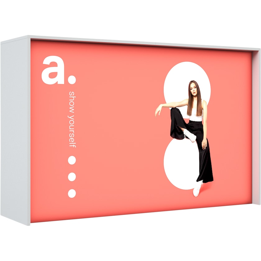 Table d'exposition éclairée par LED d'une largeur totale de 150 cm. La table d'exposition a une structure intelligente avec un rideau en tissu avec des lumières LED qui illuminent votre sujet. L'assemblage est très simple et ne nécessite aucun outil. Les pièces s'emboîtent simplement. Si vous souhaitez modifier le motif à l'avenir, commandez simplement un nouveau tissu chez nous. Un sac de rangement à roulettes est inclus.