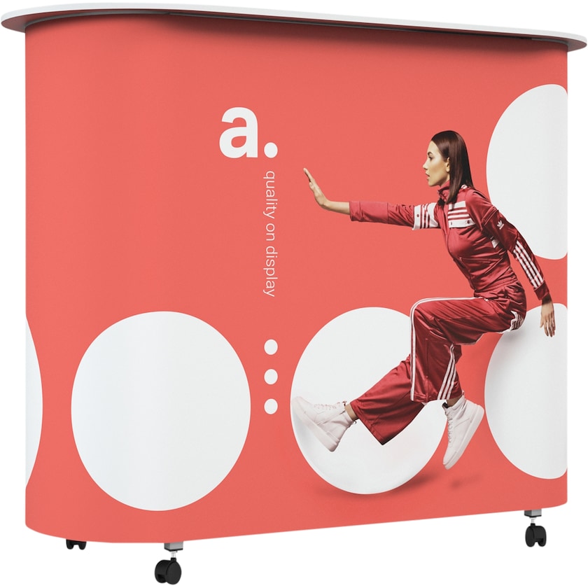 Table de salon ovale avec roulettes pratiques. Malgré sa taille, la table du salon est facile à déplacer. L'assemblage s'effectue en douceur en habillant le tissu sur la structure en aluminium de la table. Si vous souhaitez changer de motif, il vous suffit de commander chez nous un nouveau tissu imprimé. Supporte un poids maximum de 100 kg.